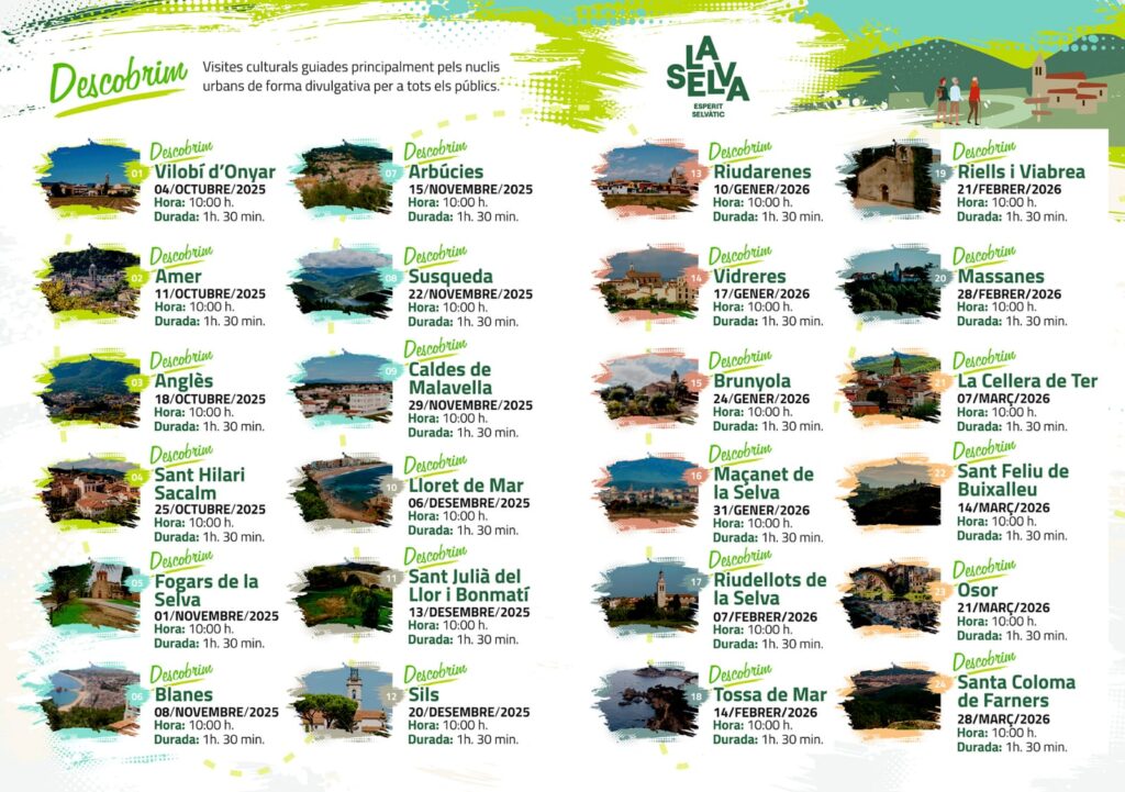 - La Selva Turisme proposa un nou cicle d’activitats culturals des d’aquest mes d’octubre fins a finals de maig del 2026 cada dissabte a les 10 h.