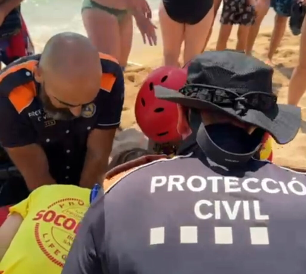 Els efectius de salvament de Proactiva van actuar amb rapidesa i van arribar fins a la víctima en pocs segons. Un cop traslladada a la sorra, van col·locar-la en posició de seguretat i van començar a atendre-la, tot activant immediatament els protocols amb Protecció Civil i el Sistema d’Emergències Mèdiques (SEM).