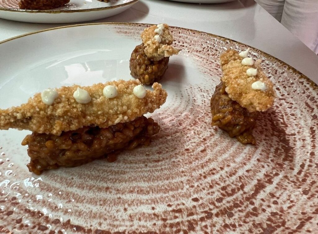 …un arròs mediterrani de peix blau amb seitó cruixent i maionesa cítrica de coriandre, una creació que combina tradició, creativitat i producte local.
